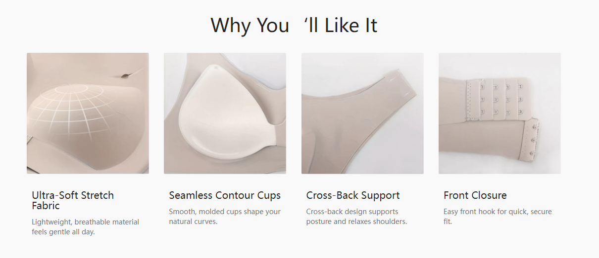 The cross-back straps gently pull your shoulders back to improve alignment, reduce slouching, and support a naturally lifted posture throughout the day.